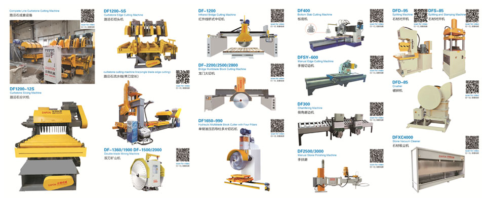 泉州達(dá)鋒機(jī)械有限公司坐落于世界石都一一中國 · 水頭,是一家集研發(fā)設(shè)計、生產(chǎn)制造、銷售服務(wù)于一體的專業(yè)石材建材機(jī)械綜合服務(wù)型企業(yè)。產(chǎn)品涵蓋自動路沿石流水線設(shè)備、石材切割和磨光設(shè)備、自保溫砌塊設(shè)備等工業(yè)智能機(jī)械設(shè)備及金剛石工具輔料等。本著精益求精的原則,憑借不斷積累的制造技術(shù)和經(jīng)驗,達(dá)鋒機(jī)械逐漸成為石材機(jī)械設(shè)備生產(chǎn)制造業(yè)的領(lǐng)頭羊。